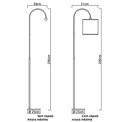 Modelo: Luminária de Chão Curva Santa Oliva com Cúpula em Tecido – Altura Regulável