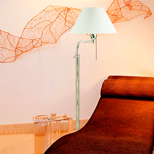 Modelo: Luminária de Chão Curva Sarral com Cúpula em Tecido – Altura Regulável