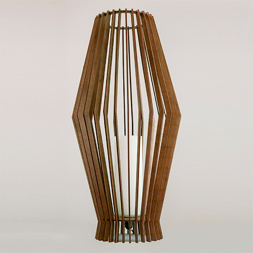 Além de ser uma peça funcional, esta luminária se torna um elemento decorativo único. O contraste entre a textura natural da madeira multilaminada e o vidro confere modernidade e sofisticação, adaptando-se com maestria a diferentes estilos de decoração.