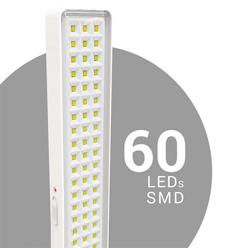 Equipada com uma bateria de 1.2Ah, a Luminária de Emergência oferece uma autonomia de 3 horas em alta potência e 6 horas em baixa potência, assegurando tranquilidade em situações prolongadas de falta de energia. Com um índice de proteção IP20, é ideal para ambientes internos, incluindo cozinha, quarto, sala, hall, lavabo, closet, varanda, corredores, banheiro, mobiliário, armários, escadas, restaurantes, pubs, hotéis, teatros e outros.