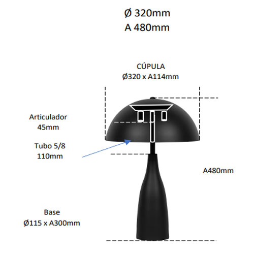 Lâmpada: 2 – Branco Quente(3000K), Branco Neutro(4000K) ou Branco Frio(6000K) (NÃO INCLUSO)
