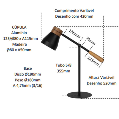 Modelo: Luminária de Mesa Serena
