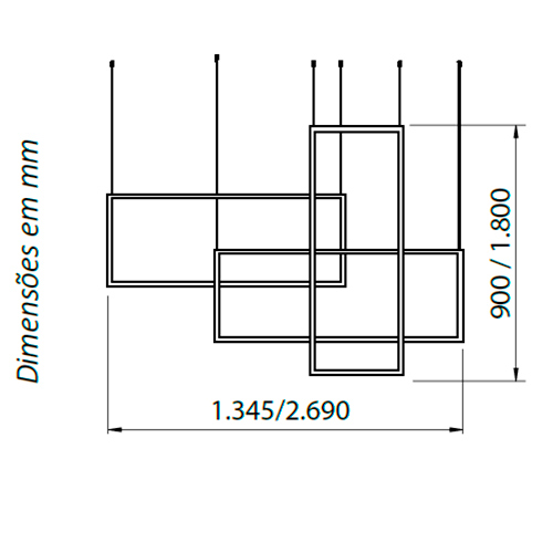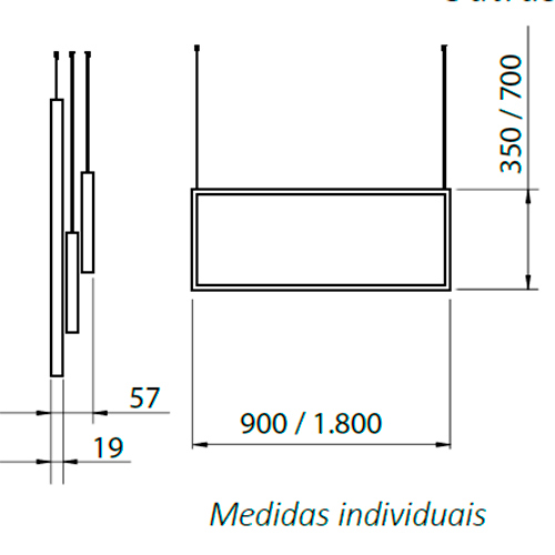 Dimensões: A:90cm / C:5,7cm / L:134,5cm