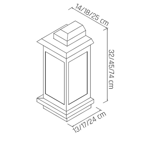 Dimensões: Ø: 25cm x A: 74cm x L: 24cm.