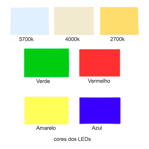 Opções de LED: 2700K, 4000K, 5700K – opcional RGB, VM, VD, AZ, ÂMBAR.