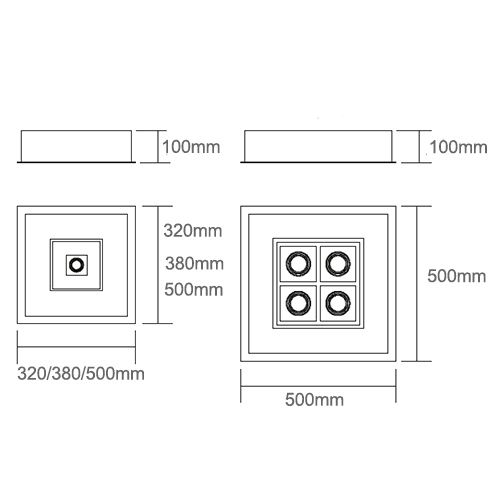 Modelo: Luminária de Teto Embutido Quadrado Mira.