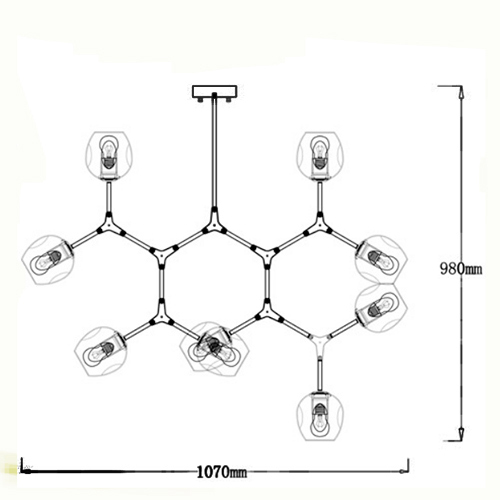 Lâmpada: 9x E27 – Branco Quente (3000K) ou Branco Frio (6000K). (NÃO INCLUSO)