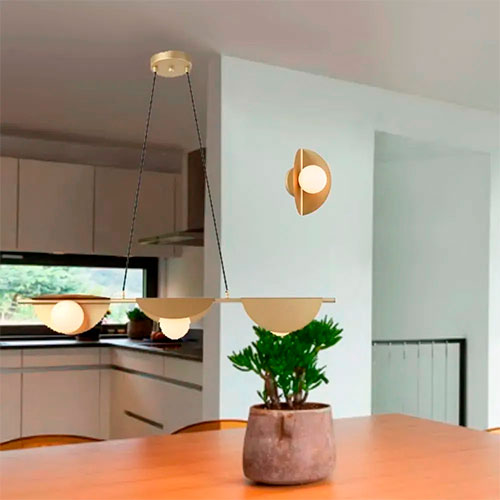 Modelo: Luminária de Teto Pendente 3 Globos Linear com Folha
