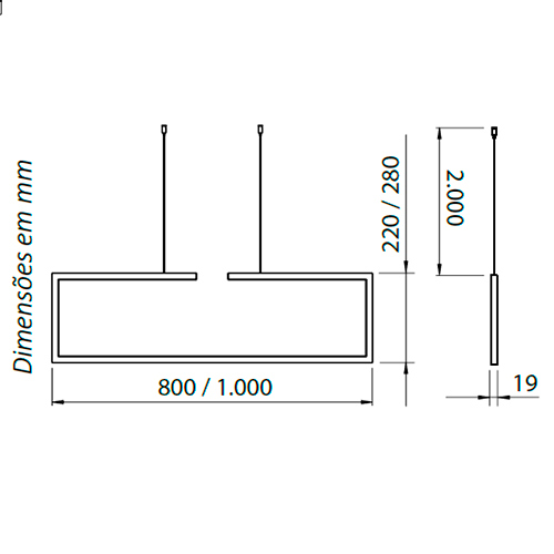 Material: Alumínio extrudado com difusor em acrílico leitoso