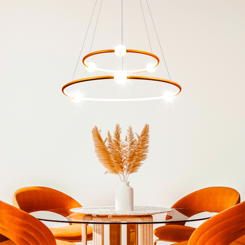 Com um peso de 3,300kg, o pendente NÉBULA Duplo possui grau de proteção IP20, garantindo sua durabilidade e resistência. Está disponível nas cores preto e dourado, se adaptando facilmente a diferentes estilos de decoração.
