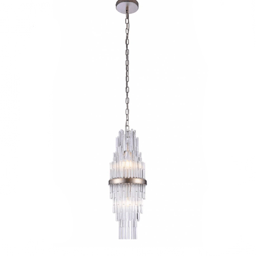 A Pendente Sansa é uma luminária de teto que possui um design moderno e elegante, fabricada em metal e vidro. Ela utiliza 2 lâmpadas E14 tipo vela (não inclusas) e tem soquete compatível com esse tipo de lâmpada. Sua cor é dourada e transparente, combinando facilmente com diversos estilos de decoração.