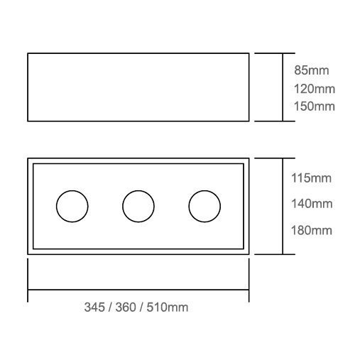 Modelo: Luminária de Teto Plafon Sobrepor Frente Recuada para 3 Lâmpadas.
