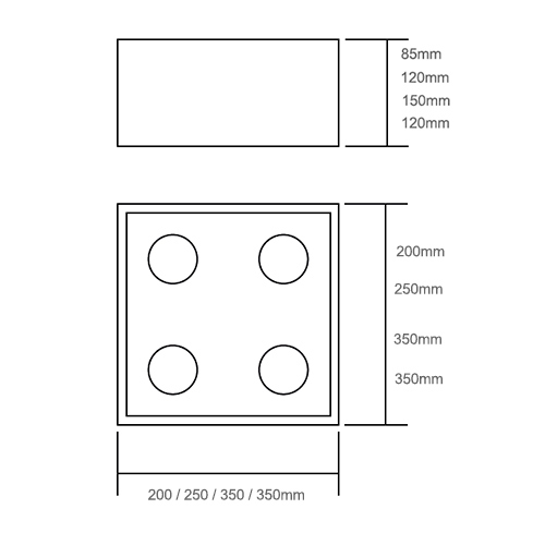 Modelo: Luminária de Teto Plafon Sobrepor Frente Recuada para 4 Lâmpadas.