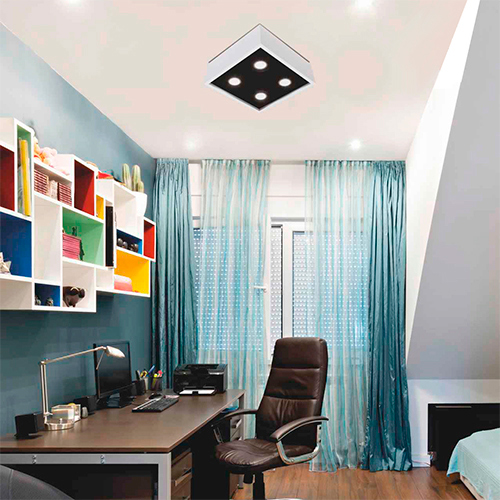 Luminária de Teto Plafon Sobrepor Frente Recuada para 4 Lâmpadas