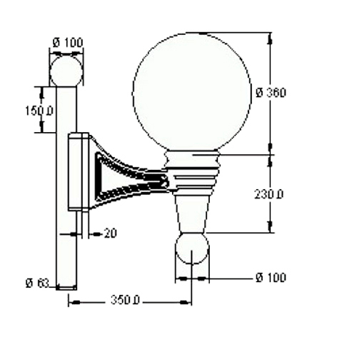 Modelo: Luminária de 1 Esfera sem Difusor.