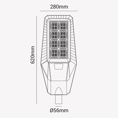 A Luminária Solar para Poste 200W é a solução ideal para iluminar praças, vias públicas, parques, calçadões, áreas de passeio e condomínios. Com uma temperatura de cor de 6500K e fluxo luminoso de 1.000 lm, esta luminária proporciona uma iluminação clara e eficiente com um ângulo de 180° e índice de reprodução de cores (IRC) superior a 70.