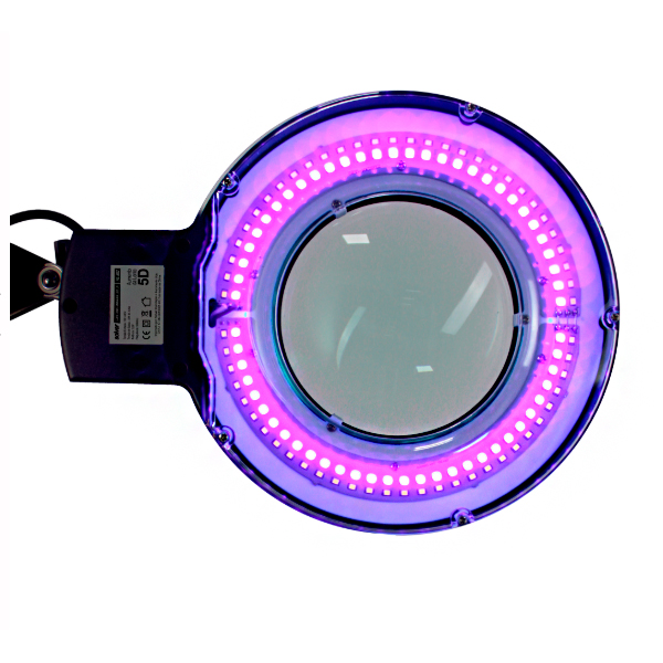 Possui iluminação com 60 LEDs brancos e 60 LEDs UV, 1200 lúmens e capa translúcida que proporciona um ótimo contraste, economia e maior vida útil. Os movimentos do braço articulável com molas embutidas proporcionam maior flexibilidade e ergonomia para quem usa.