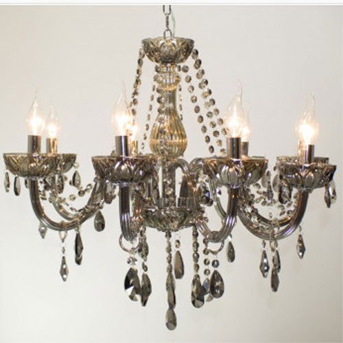 O corpo principal do lustre é feito de metal resistente, proporcionando durabilidade e estabilidade. O acabamento cromado confere um brilho sutil, adicionando um aspecto moderno à peça. Além disso, a tonalidade fumê presente nos cristais proporciona um charme adicional, criando reflexos de luz encantadores.