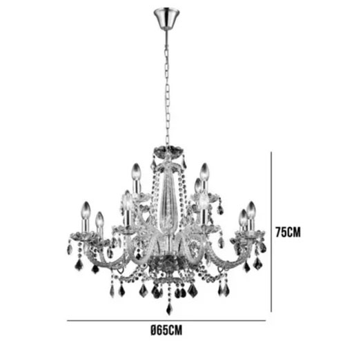 O lustre candelabro TYENE de 12 braços com cristais é uma peça deslumbrante que certamente chamará a atenção em qualquer ambiente. Feito de metal de alta qualidade, cristais exuberantes e vidro transparente, este lustre combina elegância clássica com um toque moderno.