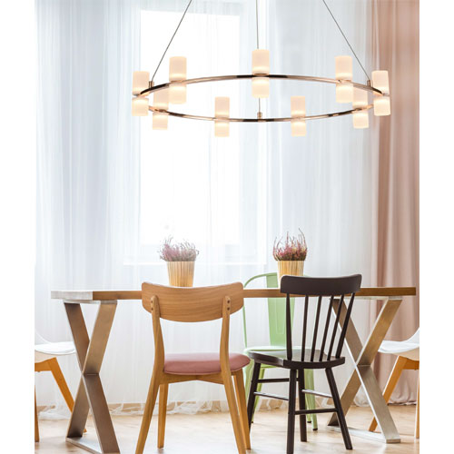 O modelo Pequeno do Candella possui uma potência de iluminação de 36W LED, o que é equivalente a 9 lâmpadas de 4W. Essas lâmpadas emitem uma luz branca quente, com temperatura de cor de 3000K, proporcionando um ambiente acolhedor e aconchegante. As lâmpadas LED são integradas ao lustre, o que garante uma instalação simples e uma aparência mais clean.