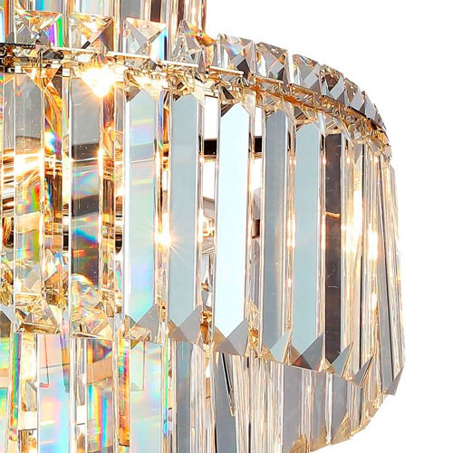 O lustre está disponível em duas opções de cores, oferecendo versatilidade para se adequar ao estilo e à decoração do ambiente. A primeira opção é o dourado com cristal transparente, que proporciona um brilho suave e uma aparência luxuosa. A segunda opção é o cromado com cristal conhaque, que cria um contraste sofisticado entre o metal brilhante e os cristais em tons mais quentes.