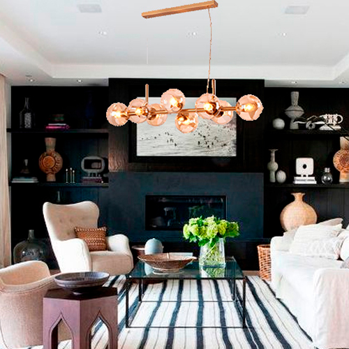 Modelo: Lustre Moderno Linear Dourado com 8 Globos de Vidro
