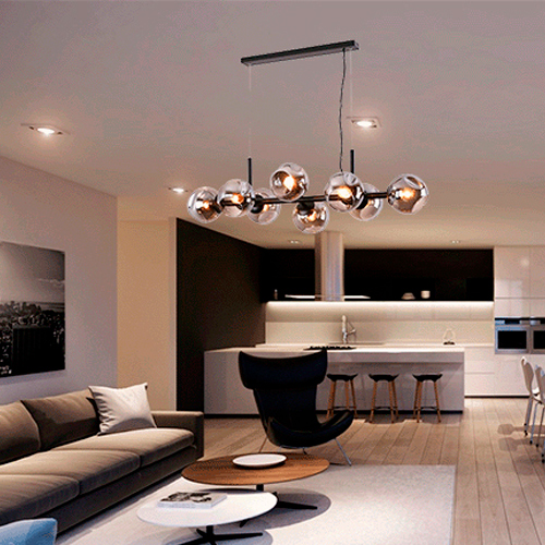 Modelo: Lustre Moderno Linear Preto com 8 Globos de Vidro Fumê