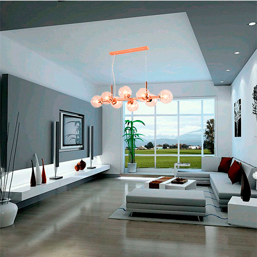 Modelo: Lustre Moderno Linear Rosê com 8 Globos de Vidro Clear