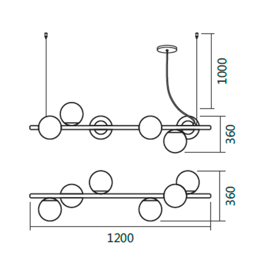 Modelo: Lustre Moderno Pendente Centauro com 6 Globos de Vidro
