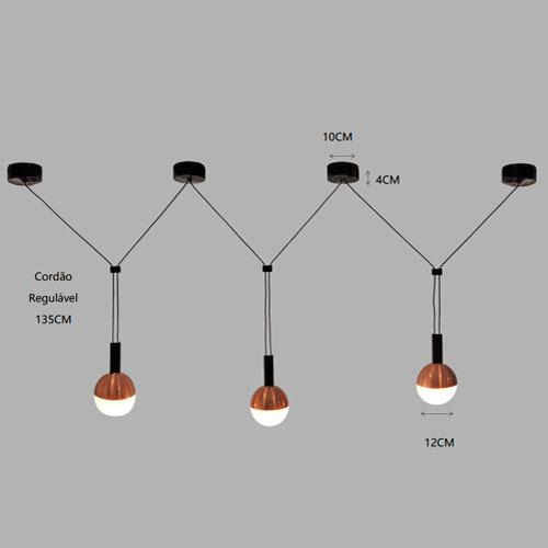 Modelo: Lustre Moderno Pendentes com Globos de Vidro – LED INTEGRADO