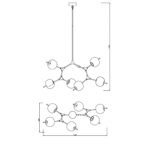 Modelo: Lustre Moderno Poma com 6 Globos de Vidro