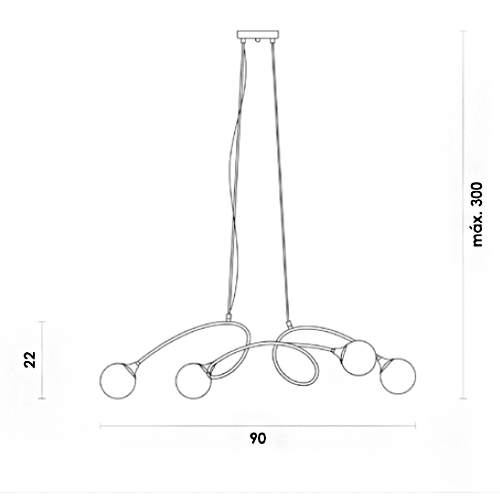 Modelo: lustre pendente ALATA para baixo 4 globos