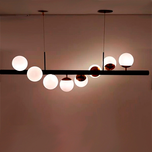 O lustre está disponível em diversas opções de acabamento, incluindo pintado, pintado/escovado e pintado/polido, cada um com sua própria estética única. Os globos do lustre também oferecem opções de personalização, apresentando acabamentos em branco, âmbar e transparente, permitindo a adaptação à atmosfera e estilo de cada espaço.