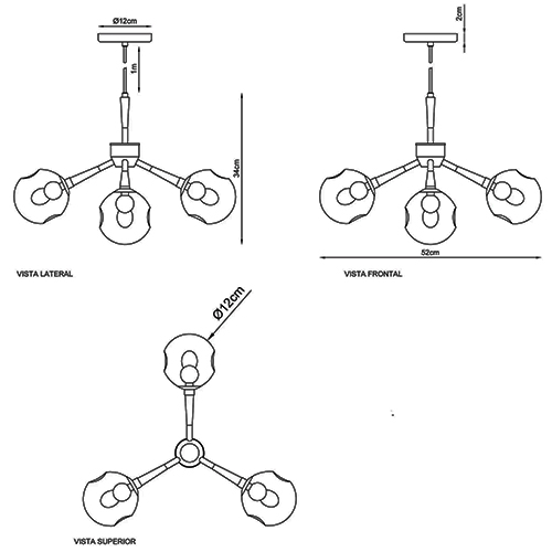 Modelo: Lustre Pendente Moderno Coll com 3 Globos