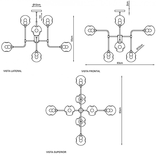 Lâmpada: 8x G9 LED – Branco Quente(3000K) ou Branco Frio(6000K) (NÃO INCLUSO)