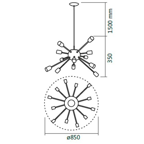 Lâmpada: 12x E27 LED – Branco Quente(3000K) ou Branco Frio(6000K) (NÃO INCLUSO)