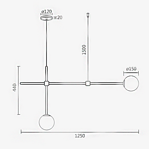 Modelo: Lustre Pendente Moderno thin com 2 Globos de Vidro