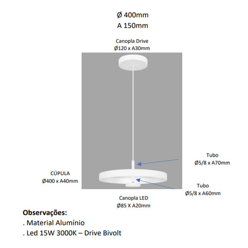 Cor de fio e deslocador são opcionais a escolha do cliente
