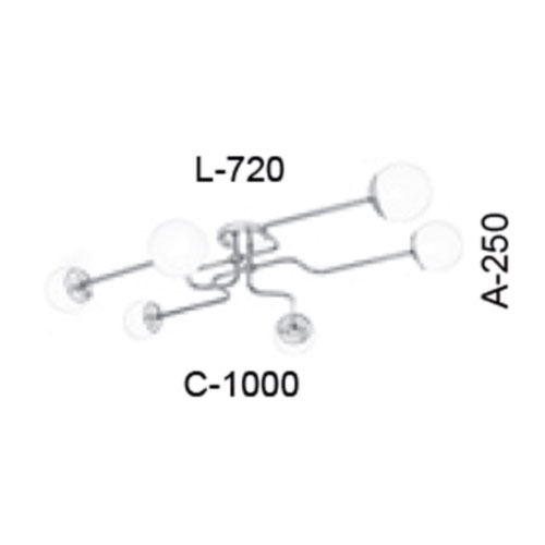 Modelo: Lustre Plafon Curvas com Globos de Vidro