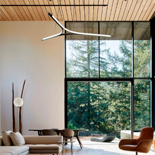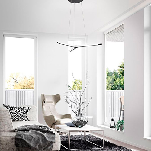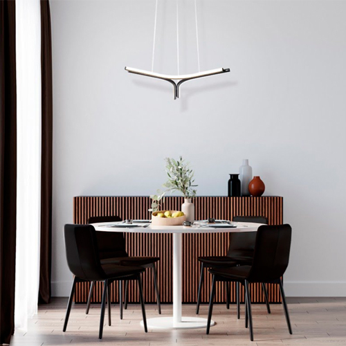 O Pendente SPINNER trás belas curvas no design da lumiária e está disponível nas cor preta, com LED integrado na cor 3000K, indicado para ambientes aconchegantes.