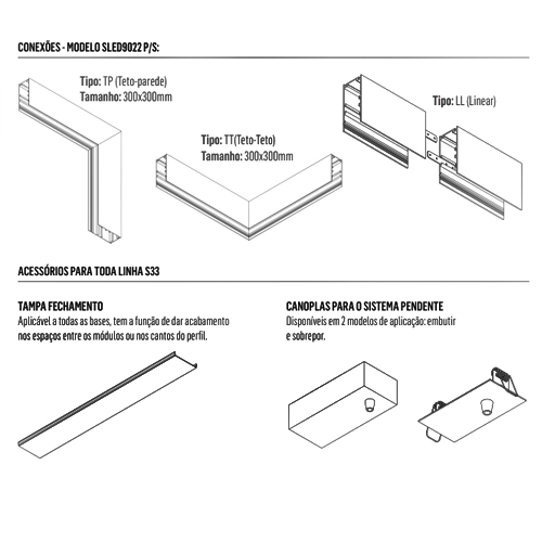 O corpo deste módulo é fabricado em alumínio extrudado, garantindo durabilidade e dissipação eficaz de calor. A ótica é feita de PMMA, um material resistente e transparente que melhora a eficiência da luz. O S33 está disponível nas cores branca e preta, permitindo que você escolha o estilo que melhor se adapta ao seu ambiente.