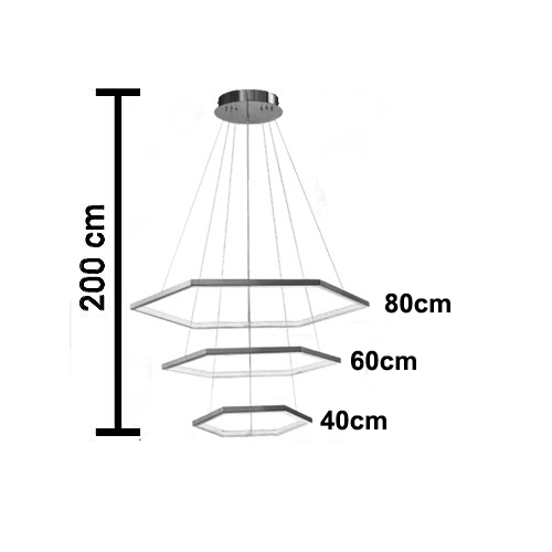 Modelo: Luminária de Teto Pendente 3 Aros Sextavados com LED Integrado