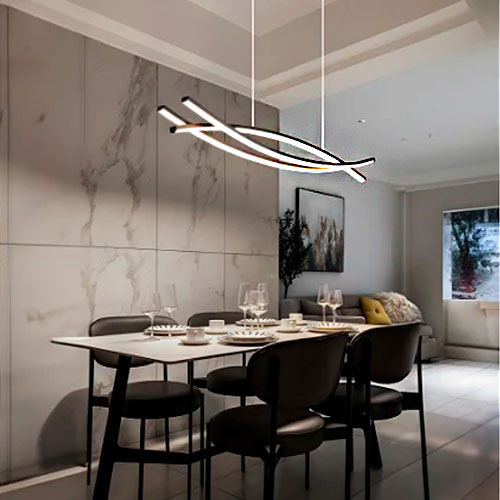 Versátil, o pendente ADHARA se encaixa em múltiplos cenários, como salas de estar, áreas de jantar, cozinhas, quartos e até ambientes comerciais que busquem um toque refinado, como restaurantes, cafés, hotéis e espaços de recepção. Seu formato linear favorece a distribuição homogênea da luz, evitando sombras indesejadas e realçando elementos importantes da decoração ou do mobiliário.