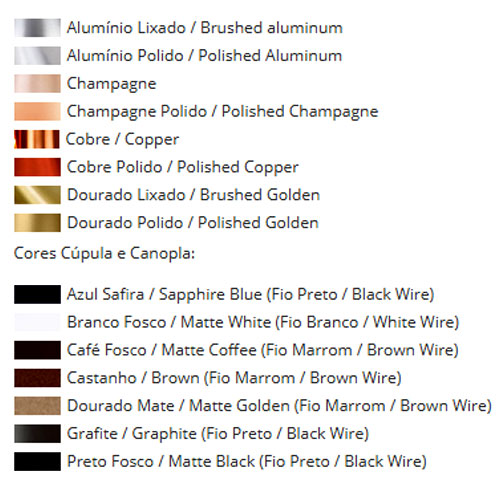 Disponível nas Cores: Alumínio Lixado / Alumínio Polido / Champagne / Cobre / Dourado / Azul / Café / Safira / Grafite / Preto / Mais sob consulta…