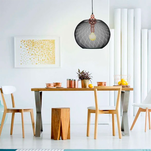 O Pendente Copper é uma luminária de teto com um design moderno e elegante. É feito de metal, com uma estrutura em forma de tela que permite a passagem de luz de forma suave e difusa. O material utilizado confere durabilidade e resistência ao produto.