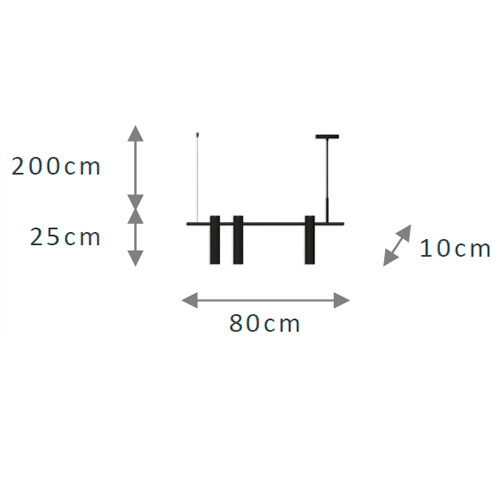 As dimensões do pendente são 80x10x25cm, o que o torna um destaque atraente para qualquer ambiente. O cabo que acompanha a peça possui 2 metros de comprimento, permitindo uma flexibilidade na instalação.