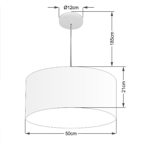 Modelo: Pendente Cilíndrico Slim Cúpula em Tecido 50cm – CORES DIVERSAS