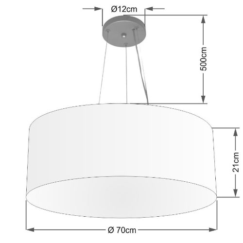 Modelo: Pendente Cilíndrico Slim Cúpula em Tecido 70cm – CORES DIVERSAS