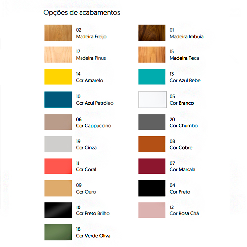- Variedade de Cores: Além do acabamento em imbuia, oferecemos outras opções de cores. Consulte-nos para descobrir as opções disponíveis.