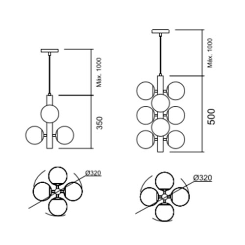 Modelo: Pendente Garôla com Globos de Vidro